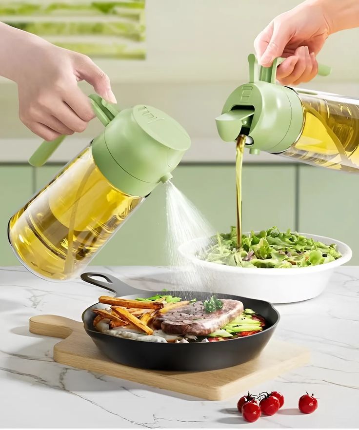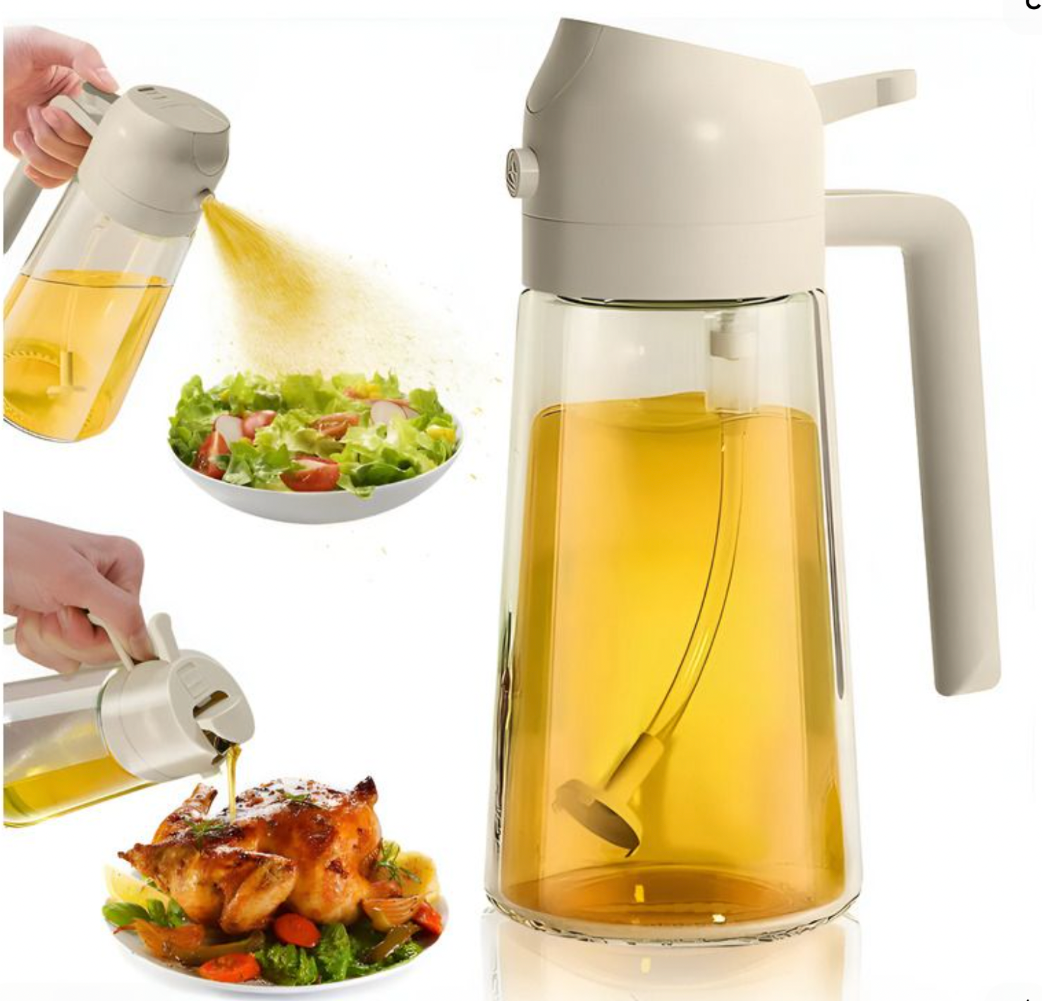 Diseñado con una tecnología de doble función, te permite usar el modo spray para un toque ligero y preciso, o verter el aceite normalmente cuando necesites más cantidad, es una herramienta que revoluciona tu cocina.